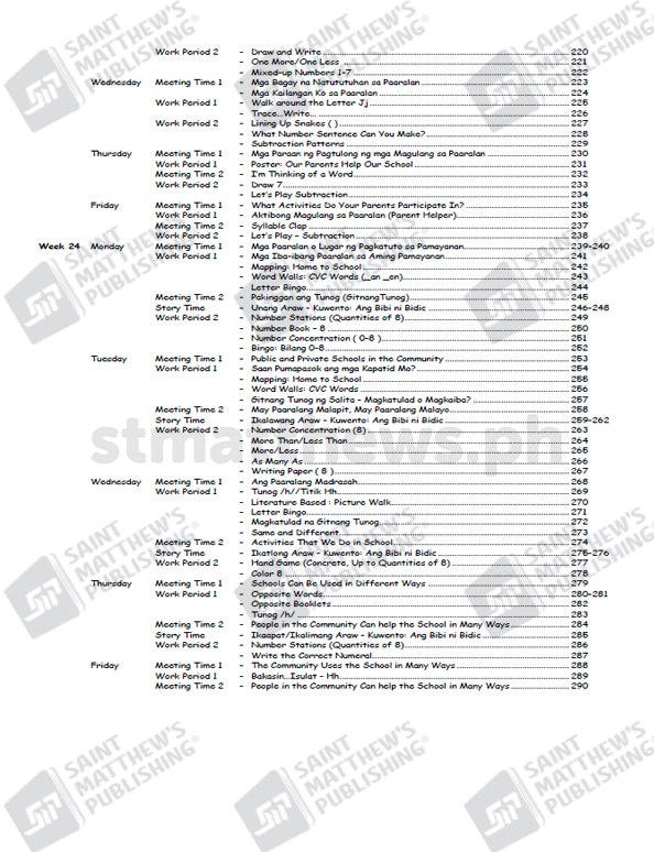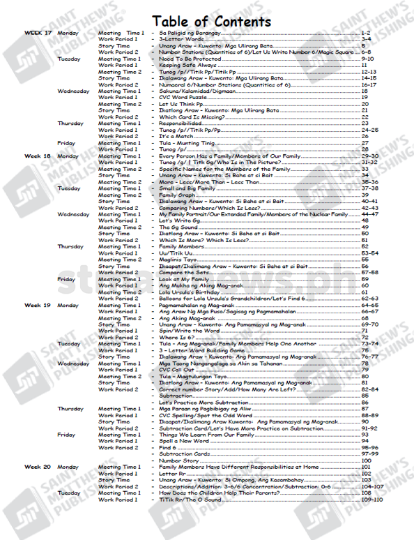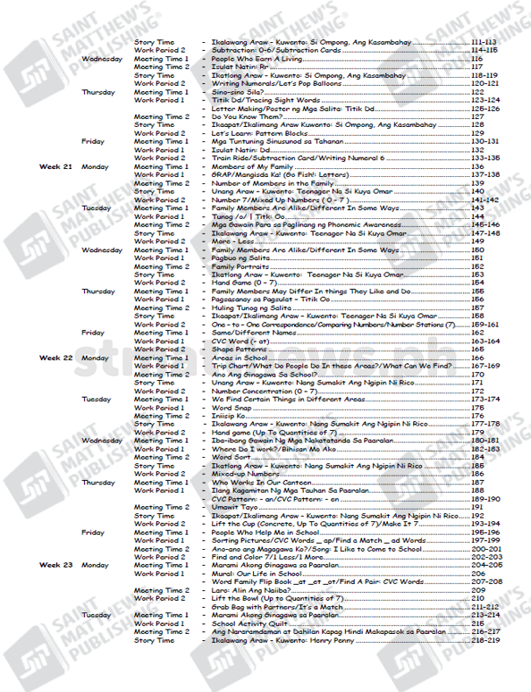 BUHAY Kindergarten Integrated Core Curriculum (ICC) Week 17-24