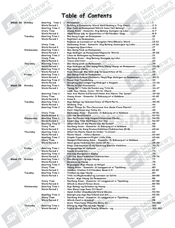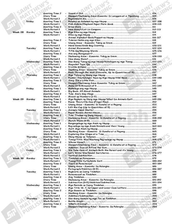 BUHAY Kindergarten Integrated Core Curriculum (ICC) Week 25-32
