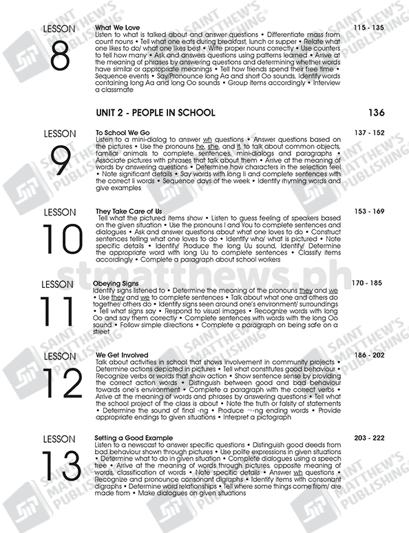 BUHAY Kindergarten Integrated Core Curriculum (ICC) Week 8-16