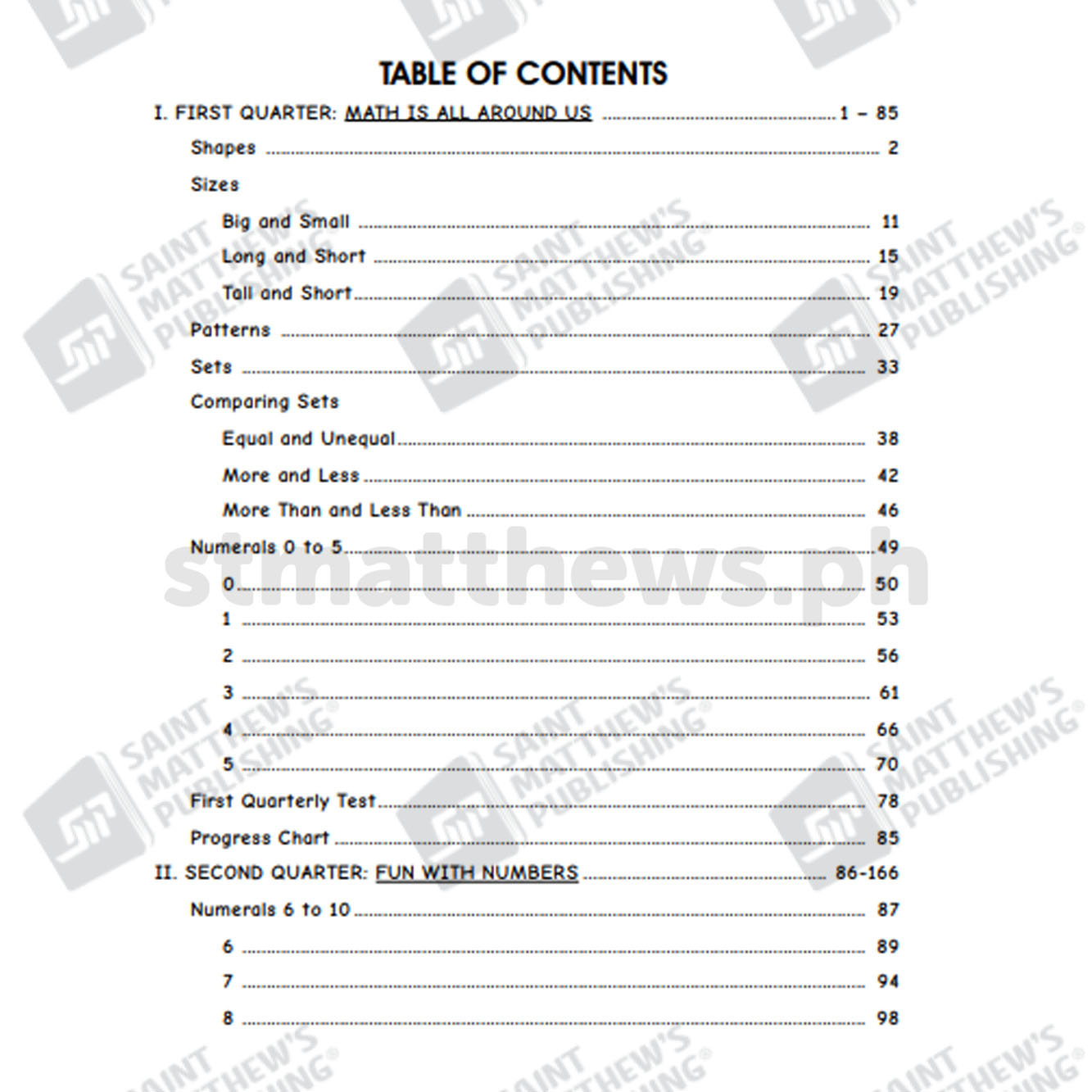 Our Progressive Approach to Mathematics for Kindergarten picks up where the Progressive Approach Nursery Math left off. This inculcates consistency and encourages Kindergarten pupils to continue to get excited about learning Math. Teachers will find it easier and more fun to teach. Since our books are thematic in approach, the suggested activities implement and reinforce the lessons in all developmental domains such as Values Education, Physical Health and Motor Development, Social and Emotional Development, and Cognitive Development. Math is made easy to remember when applied to real-life situations. Our books have plenty of exercises that allow children to play-act using their imagination. It also lets them have fun jumping, running, playing games, dancing, and singing, all for the sake of learning Math.