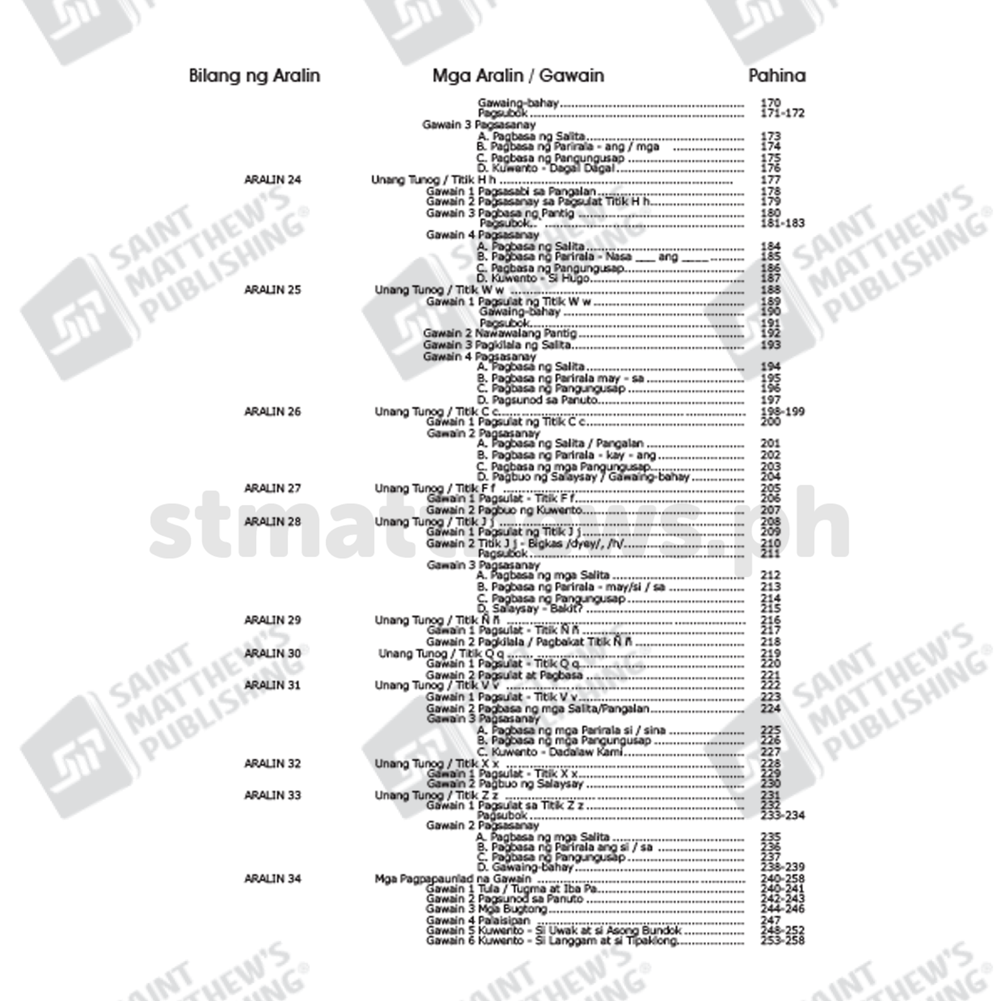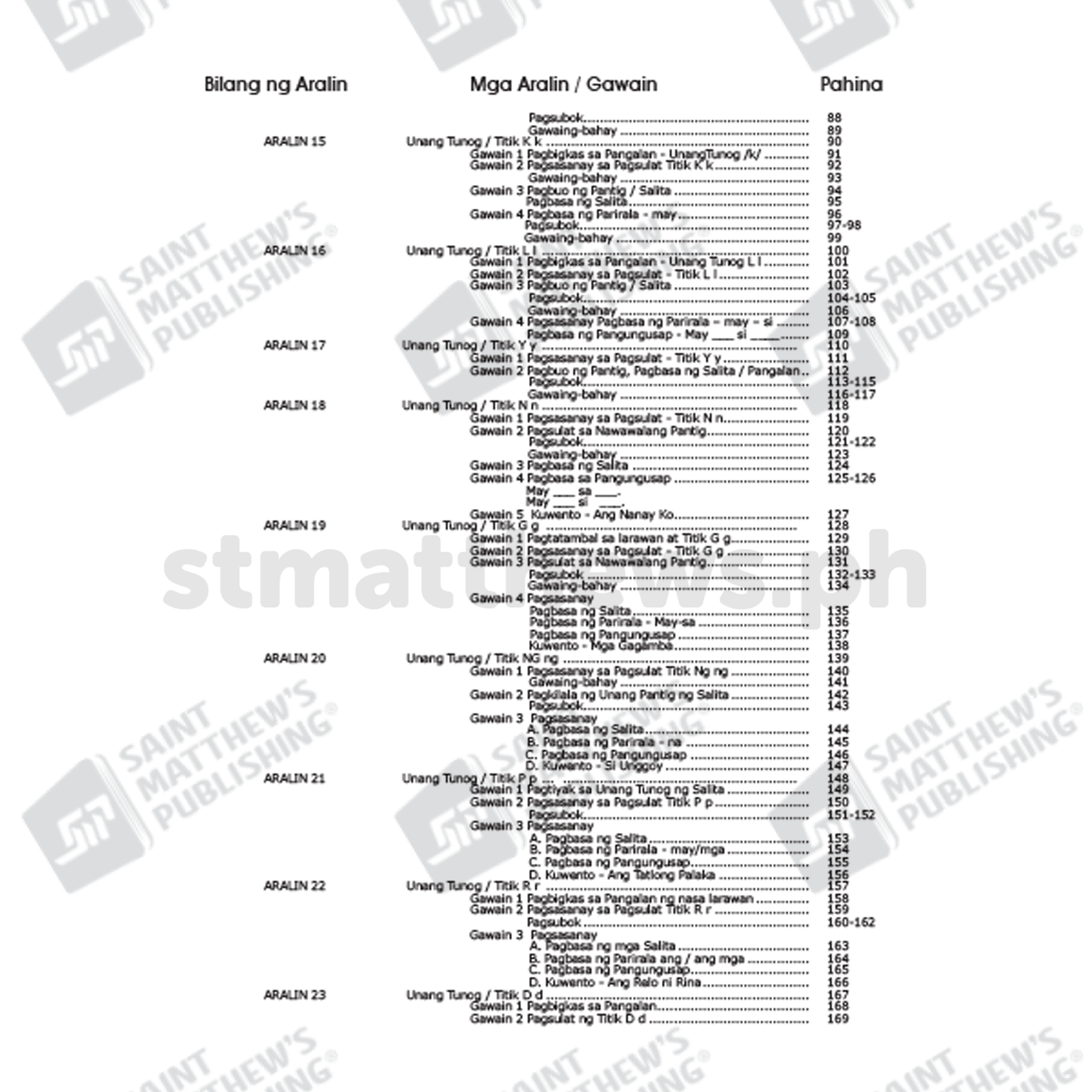“Wika, Pagbasa at Pagsulat (Kinder 2)” ay worktext na inihanda upang madaling matuto ang mag-aaral sa mga kasanayang panghahandaan sa Pakikinig, Pagsasalita, Pagbasa at Pagsulat. Ang nilalaman ng mga aklat ay batay sa K to 12 Basic Education Curriculum. Naging lunsaran ang Marungko Approach sa mga aralin sa pagbasa at inilahad ang mga ito sa tulong ng mga tugma, awit at sitwasyong makabuluhan. May mga pagsubok sa mga aralin upang makatiyak sa ganap na pagkatuto ng mga mag-aaral. Inilakip din ang mga Gawaing-bahay upang mabigyan ng pagkakataon ang mag-aaral na masubaybayan ang kanyang pag-aaral sa bahay.