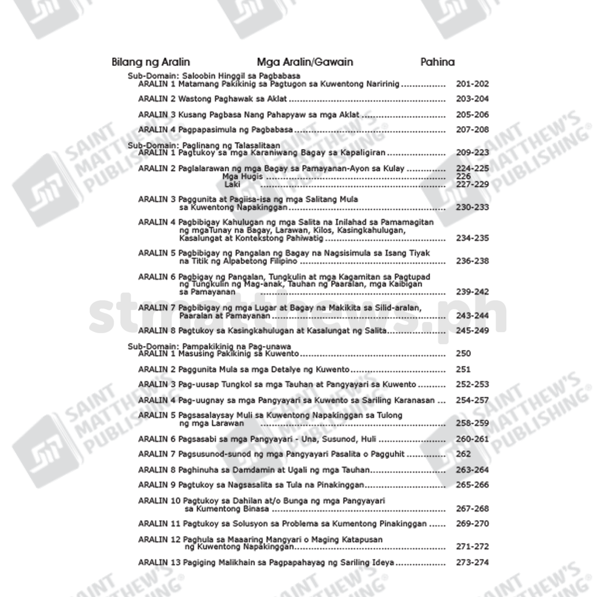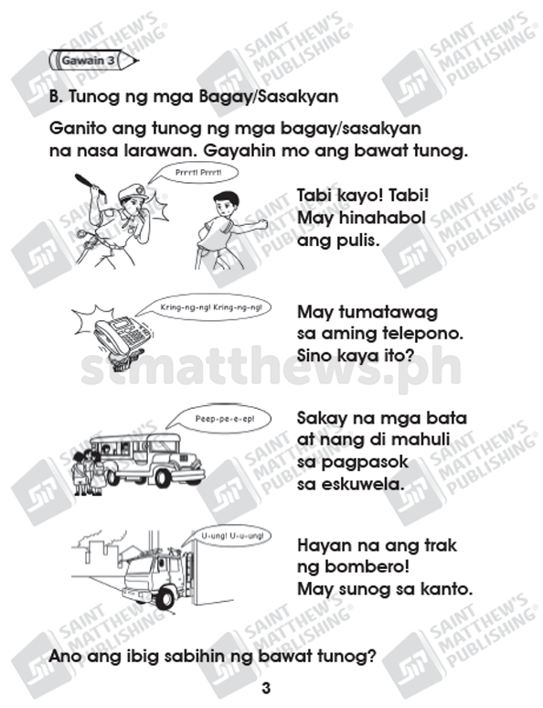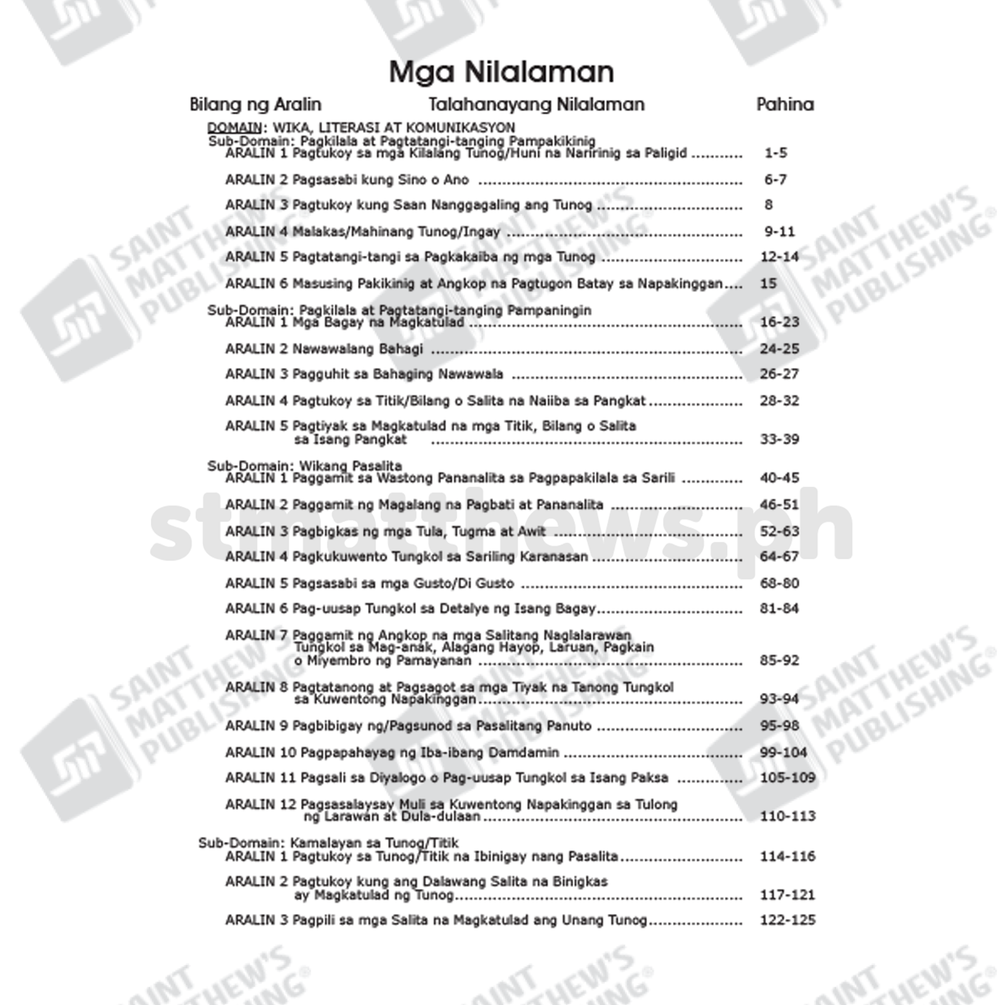 “Wika, Pagbasa at Pagsulat (Kinder 3)” ay worktext na inihanda upang madaling matuto ang mag-aaral sa mga kasanayang panghahandaan sa Pakikinig, Pagsasalita, Pagbasa at Pagsulat. Malaki ang maitutulong ng mga aralin upang matiyak na ang mag-aaral ay magagamit ang mga talasalitaang natutunan sa pagpapahayag ng kanyang mga iniisip at dinaramdam, madaling makapagbabasa at maisusulat nang wasto ang bawat titik sa Alpabetong Filipino. Naging lunsaran ang Marungko Approach sa mga aralin sa pagbasa. Inilahad ang mga ito sa tulong ng mga tugma, awit at sitwasyong makabuluhan. May mga pagsubok sa mga aralin upang makatiyak sa ganap na pagkatuto ng mga mag-aaral. Inilakip din ang mga Gawaing-bahay upang mabigyan ng pagkakataon ang mag-aaral na masubaybayan ang kanyang pag-aaral sa bahay.”